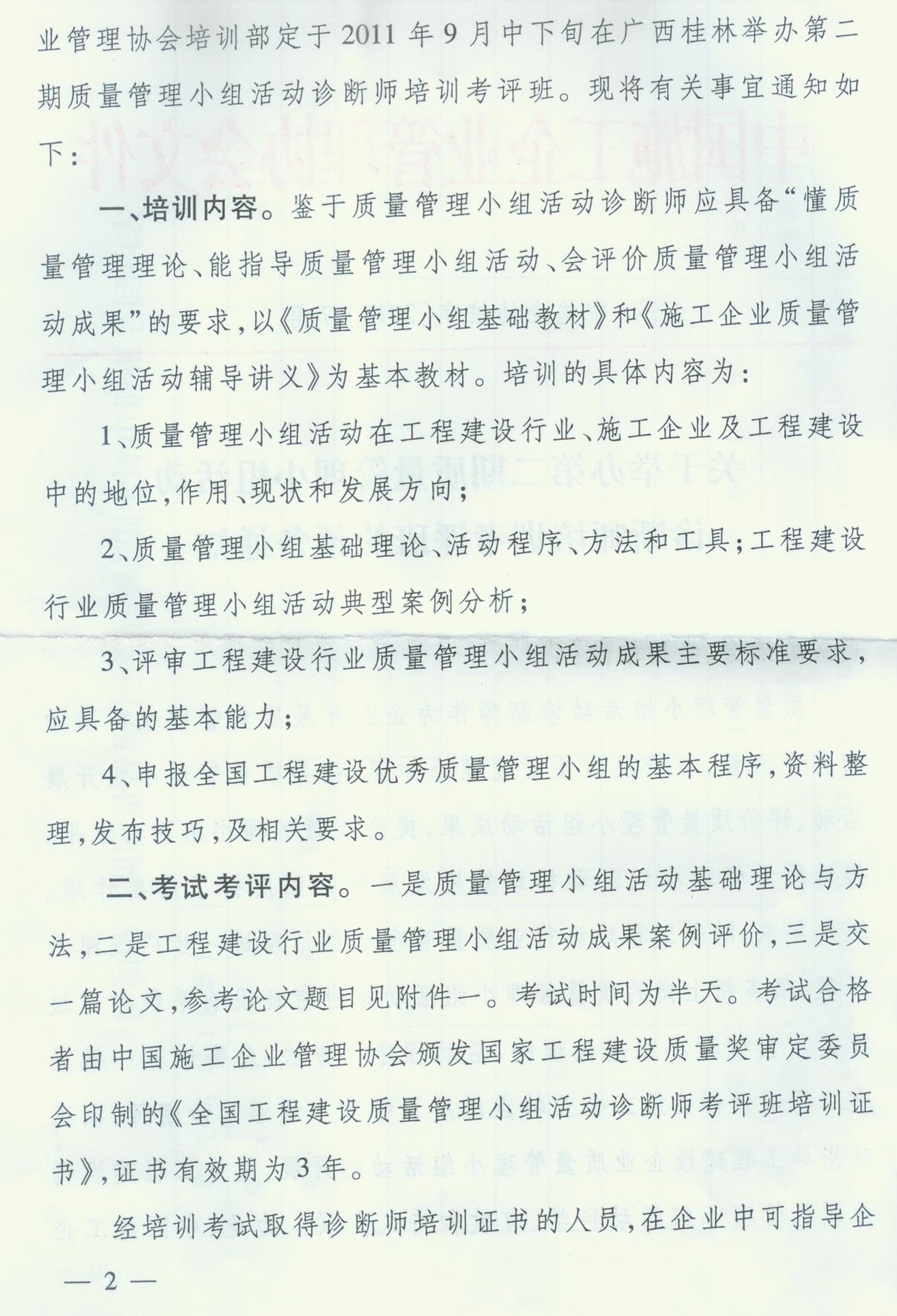 關(guān)于舉辦第二期質(zhì)量管理小組活動診斷師培訓(xùn)考評班的預(yù)備通知
