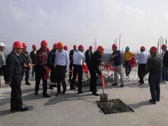 封頂儀式上,聯(lián)創(chuàng)揚(yáng)州國際軟件園董事長劉建先生,江蘇省金陵建工集團(tuán)有限公司總經(jīng)理程希同志上臺為封頂儀式剪彩;在鞭炮齊鳴聲中,各方代表手執(zhí)金鏟將混凝土注入商業(yè)地塊中心之頂,標(biāo)志著這座凝聚了金陵建工集團(tuán)員工智慧與汗水的大廈圓滿封頂。