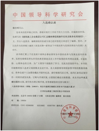 同時,財務(wù)結(jié)算部經(jīng)理楊全明同志撰寫的“建筑施工企業(yè)集團公司匯總繳納增值稅操作實務(wù)及賬務(wù)處理規(guī)范”一文成功入編中國領(lǐng)導科學研究會《求是先鋒-新常態(tài)下中國改革與發(fā)展的理論與實踐》叢書。該文章結(jié)合建筑施工企業(yè)匯總繳納增值稅的相關(guān)政策,針對集團公司法人單位與分公司、項目部相關(guān)進項、銷項發(fā)票操作實務(wù)管理及賬務(wù)處理進行了分析與探討,同時結(jié)合集團公司實際情況,符合新形勢下營改增政策,具有行業(yè)針對性、時效性、可操作性強。